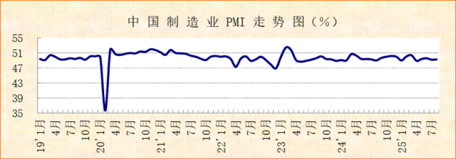 中国物流与采购联合会、国家统计局服务业调查中心发布的2025年8月份中国制造业采购经理指数(PMI)为49.4%,较上月上升0.1个百分点。结合分项指数以及分行业指数变化来看,向好基础继续巩固,制造业市场需求缓中趋稳,企业生产稳定扩张,价格指数联动上升,新动能加快扩张,传统产业也有改善,大型企业继续稳定扩张,小型企业有所恢复,宏观经济稳中有增运行,企业对后市预期乐观程度上升。